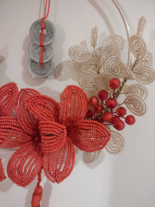 Beaded Half Wreath Flower Decoration with Lucky Chinese Coins